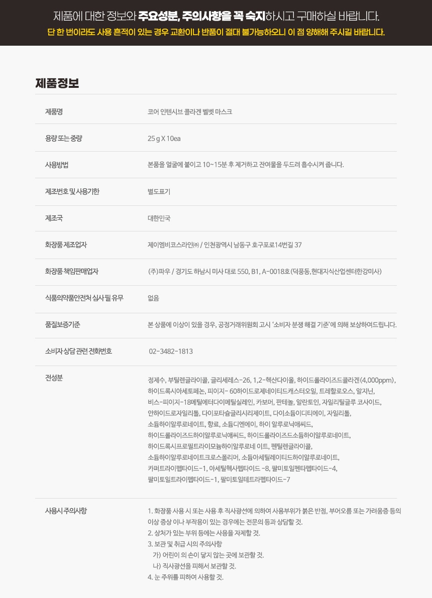 파우 코어 인텐시브 콜라겐 벨벳 마스크 (1박스/10매입)